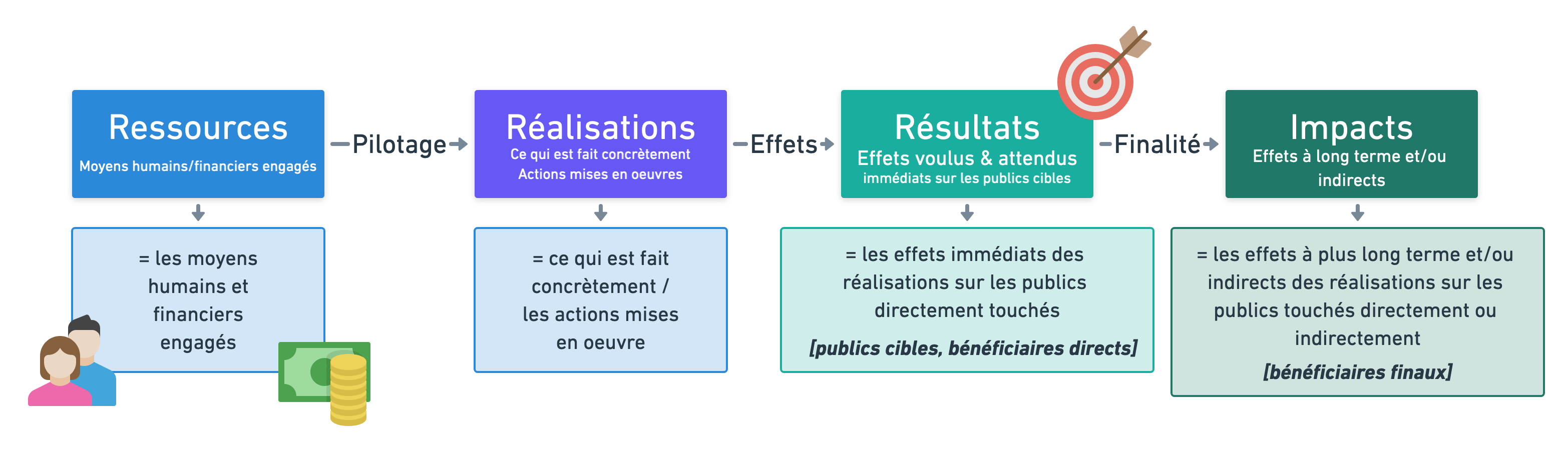 Au commencement, nous avons un processus avec des ressources, des réalisations, des résultats et des impacts